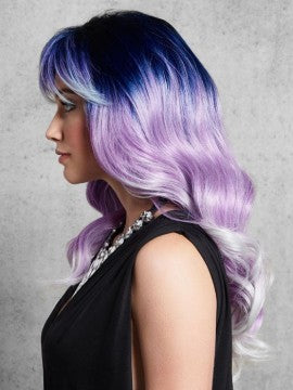 Dive into an icy-cool color journey with Arctic Melt. This heat-friendly synthetic wig features long, rooted waves that transition from midnight blue through rich purple to soft white lilac—a showstopping gradient that turns heads. Crafted from Tru2Life fiber, it's endlessly versatile: restyle the waves into curls, straighten it completely, or keep the original look. The comfortable cap design makes it perfect for a night out or all-day wear. Get those #hairgoals without the salon visit or chemical damage. Cool tones, zero commitment.