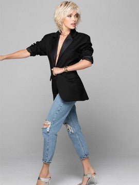 Rock that effortless, textured vibe with this Razor Cut Shag by Tressallure! Designed with heat-friendly fibers, you can style it straight, wavy, or curly—whatever mood strikes. The choppy layers create instant movement and dimension, giving you that coveted shag aesthetic without the commitment. Whether you're channeling '70s cool or modern edge, this wig delivers versatility and confidence in one fabulous package. Grab yours and let your personality shine through!
